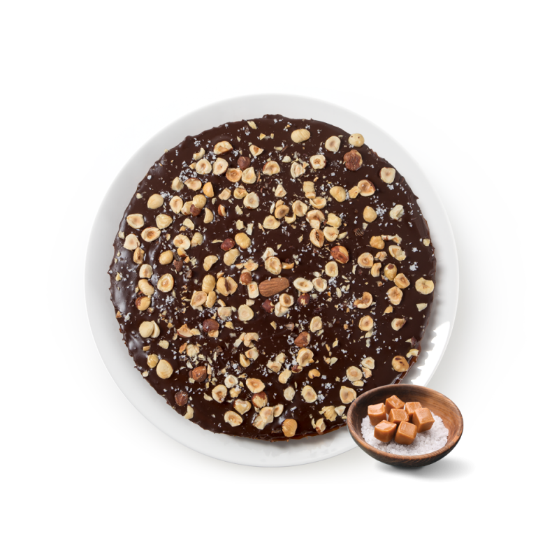 Esta tarte possui a nossa tradicional bolacha crocante e à qual é adicionada a sublime combinação do caramelo e da flor de sal da empresa portuguesa Salmarim, com o luxo do ganache de chocolate e avelãs torradas. Consegue resistir? Sugerimos ainda que experimente salpicar esta tentação de tarte com pimenta rosa ou piri-piri. Uma explosão de combinações irresistíveis!