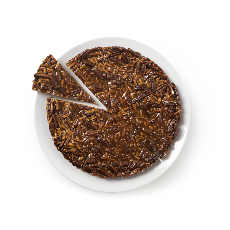 A melhor amêndoa caramelizada convidou a macia e saborosa noz pecan para uma sinfonia de sabores. Juntaram-se a uma crocante e irresistível base de bolacha e o resultado é de provar e chorar por mais.