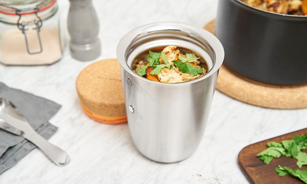 Termo de alimentos de 500 ml. 100% à prova de vazamentos este termo em aço inoxidável escovado e com vácuo de alta qualidade manterá a sua comida quente durante 6 horas ou fria durante 8 horas.