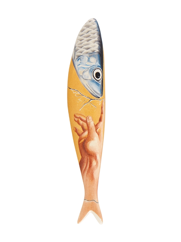Inspirada na obra de Michelangelo, "A Criação de Adão", fresco pintado no teto da Capela Sistina no século XIV, contemplamos aqui o momento mítico (e místico) da criação da Sardinha.          Designer: Teresa Dias