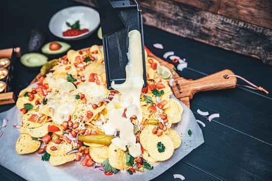 Onde é a festa? Em toda parte! O Partyclette® To Go permite derreter um delicioso queijo sobre o seu pão fresco, os seus nachos favoritos ou sobre biscoitos crocantes rapidamente a qualquer hora, em qualquer lugar. Dobre-o e está pronto para levar. Ele é delicioso no parque, nas casas dos amigos, ou no seu pátio.