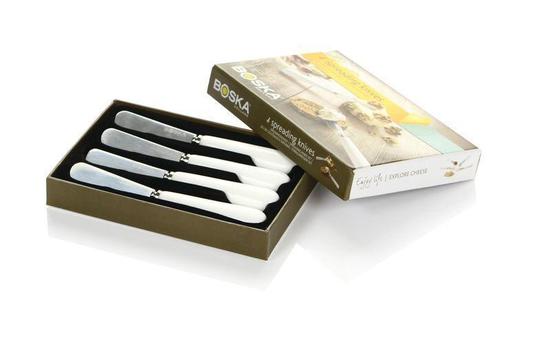 Todas as facas deste conjunto encaixam-se confortavelmente na mão graças ao cabo de cerâmica superior. Perfeito para uso com todos os tipos de queijos frescos de barrar ou moles e também manteiga.