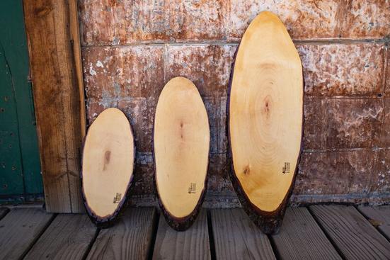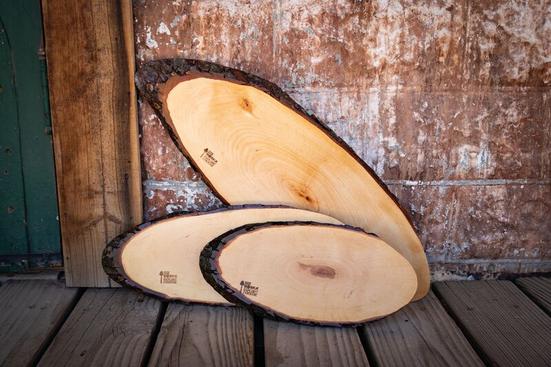 A tábua para queijo de madeira de freixo é feita de uma fatia de uma árvore. Isso significa que cada tábua possui uma forma e tamanho únicos.