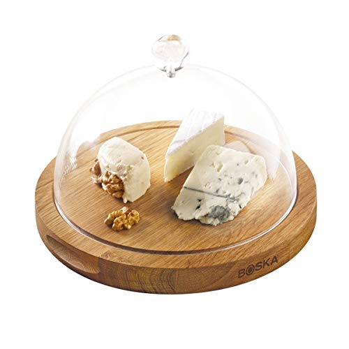 A charmosa tábua de madeira de carvalho com cúpula combinada fica óptima em todas as mesas de jantar. Graças à cúpula, você pode manter o queijo fresco por mais tempo e preservar os seus aromas. Tábua rendonda, feita 100% em Madeira de Carvalho, o que lhe dá uma aparência bonita e robusta