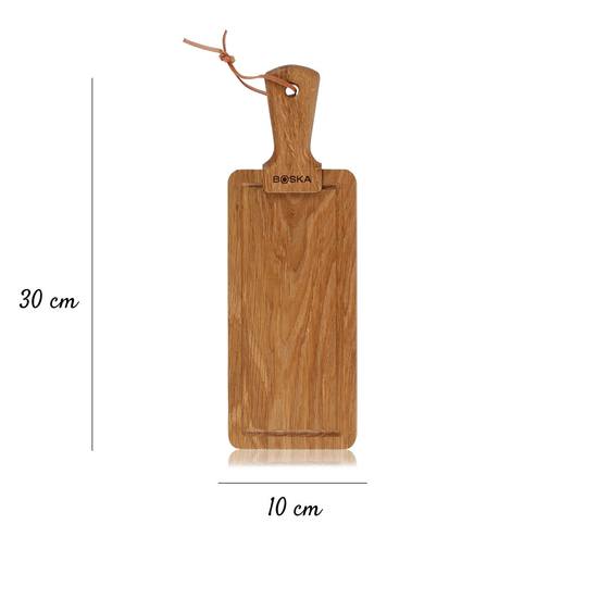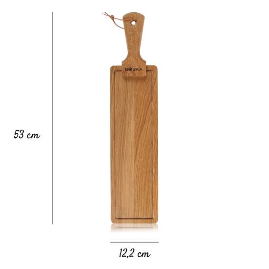 Caracteristicas: Esta tábua é feita de carvalho 100% europeu. Isso dá à tábua uma aparência bonita e rural. Lubrifique-a regularmente com óleo de tábua de queijo Boska (320080) este oléo irá proteger a sua tábua contra a absorção de manchas e odores. Dessa forma, você poderá saborear os petiscos mais deliciosos nos próximos anos.