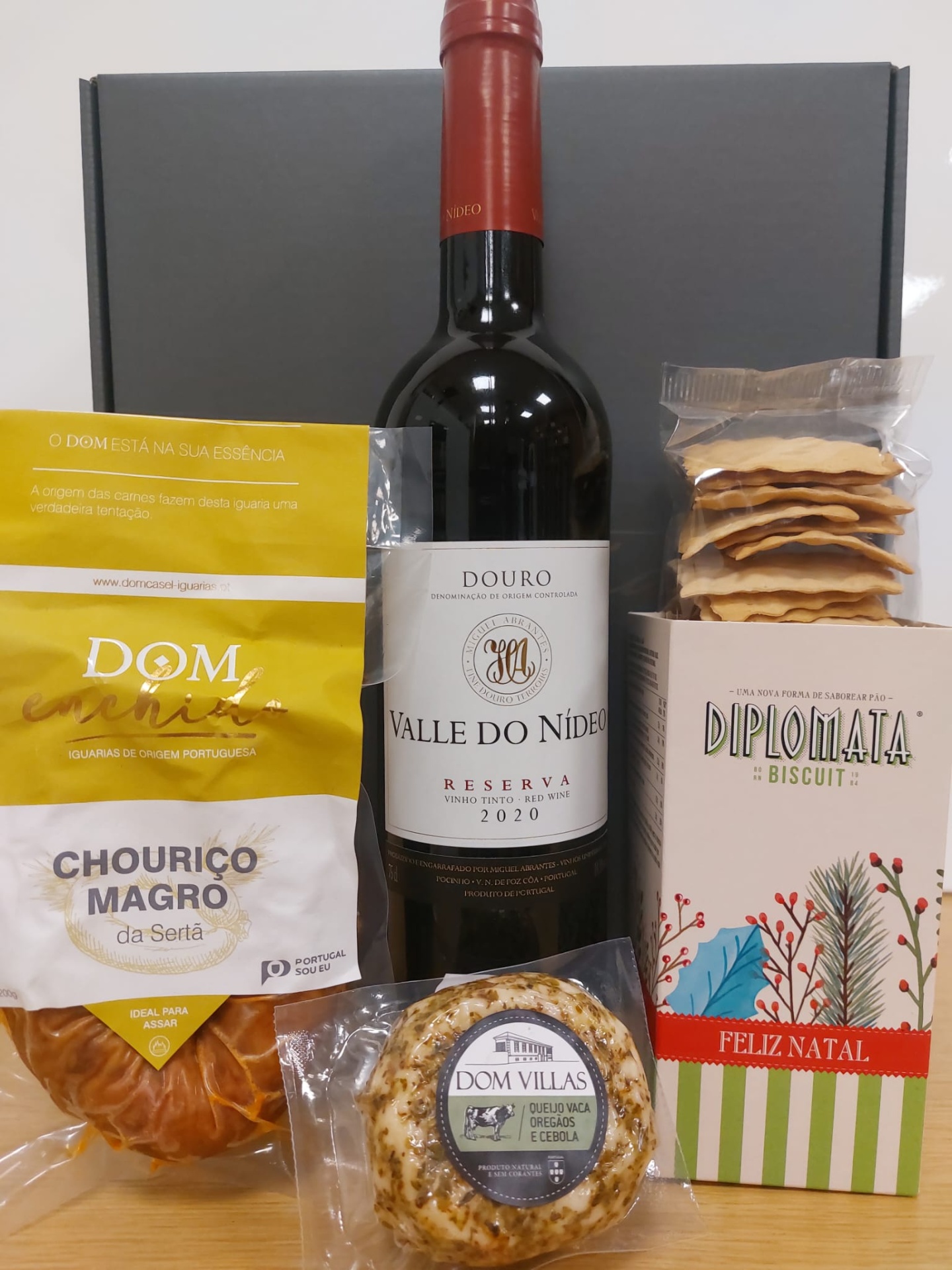 Home CABAZES DE NATAL Cabaz Original Cabaz Original 20,55 € Desconto de %. O produto encontra-se sem stock. Adicionar à wishlist Constituido por: 1 Vinho Tinto Reserva Valle do Nídeo (Douro) 1 Bolacha Diplomata Feliz Natal 1 Queijo de Vaca de 90g Dom Villas 1 Chouriço Magro da Sertã (+/- 200g) Dom Iguarias 1 Caixa Vineria Contém Sulfitos * Limitado ao stock existente ** Imagem meramente ilustrativa ** Mais informações sobre os produtos consultar ficha técnica https://vineria.shopk.it/product/valle-do-nideo-2021-vinho-branco-douro-doc https://vineria.shopk.it/product/valle-do-nideo-reserva-2019-vinho-tinto-douro-doc https://vineria.shopk.it/product/duriense-linguas-de-laranja-biscoito-2 https://vineria.shopk.it/product/groselha-espim-doce-extra-de-figo-compotas https://vineria.shopk.it/product/carob-farinha-de-alfarroba https://vineria.shopk.it/product/lisbon-tea-erva-principe-infusao-bio Preço com IVA incluido com base nas diferentes taxas de acordo com a legislação em vigor. Tags CabazCabaz de NatalNatal Partilhar
