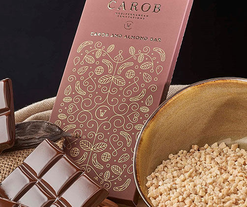 A Tablete de Alfarroba com Amêndoas Mediterranean Temptations é a combinação sublime dos frutos mais carismáticos do Mediterrâneo.