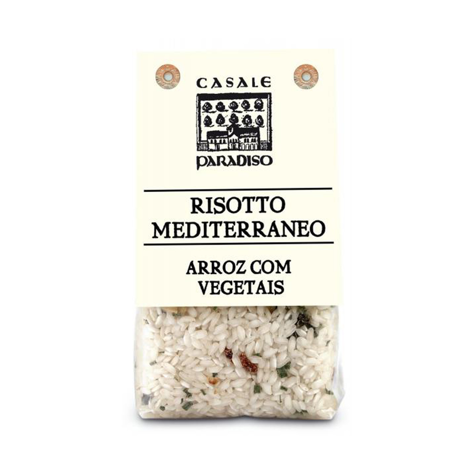 Casale Paradiso utiliza apenas arroz Carnaroli de primeira qualidade produzido na Itália e enriquece-o com vegetais e ervas aromáticas secas.