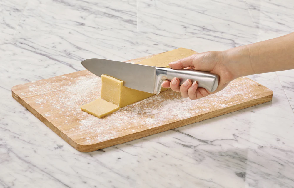 Porquê usar um rolo pesado e cortadores de massa difíceis de limpar? Com o modelador/cortador de massa da Chicago Metallic modelar e cortar a massa para biscoitos torna-se uma tarefa fácil. Basta colocar a massa dentro, refrigerar e cortar em biscoitos quadrados e de formato uniforme. A forma para biscoitos ainda imprime uma guia de corte na massa, para que todos os biscoitos tenham a mesma espessura. Na hora de limpar, basta desdobrar o modelador de biscoitos e colocá-lo na máquina de lavar louça