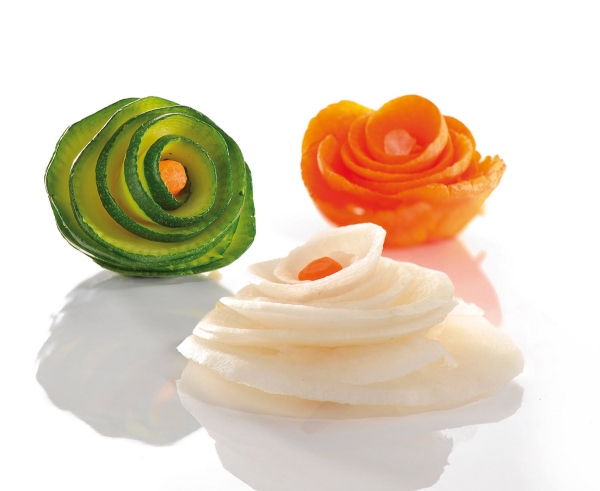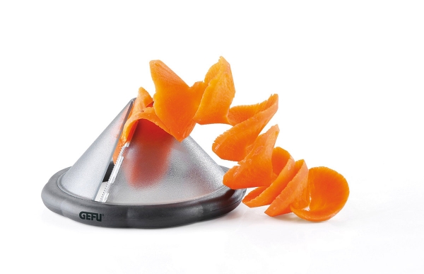 O Cortador em Espiral da GEFU continua a inspirar os artistas culinários a criar novas e deliciosas ideias de decoração. A ferramenta de cozinha pode ser usada para afiar vegetais diferentes e firmes, cortá-los em anéis ou moldá-los em floretes decorativos. Cenouras, rabanetes e afins tornam-se destaque em todos os pratos de vegetais crus e em saladas. O