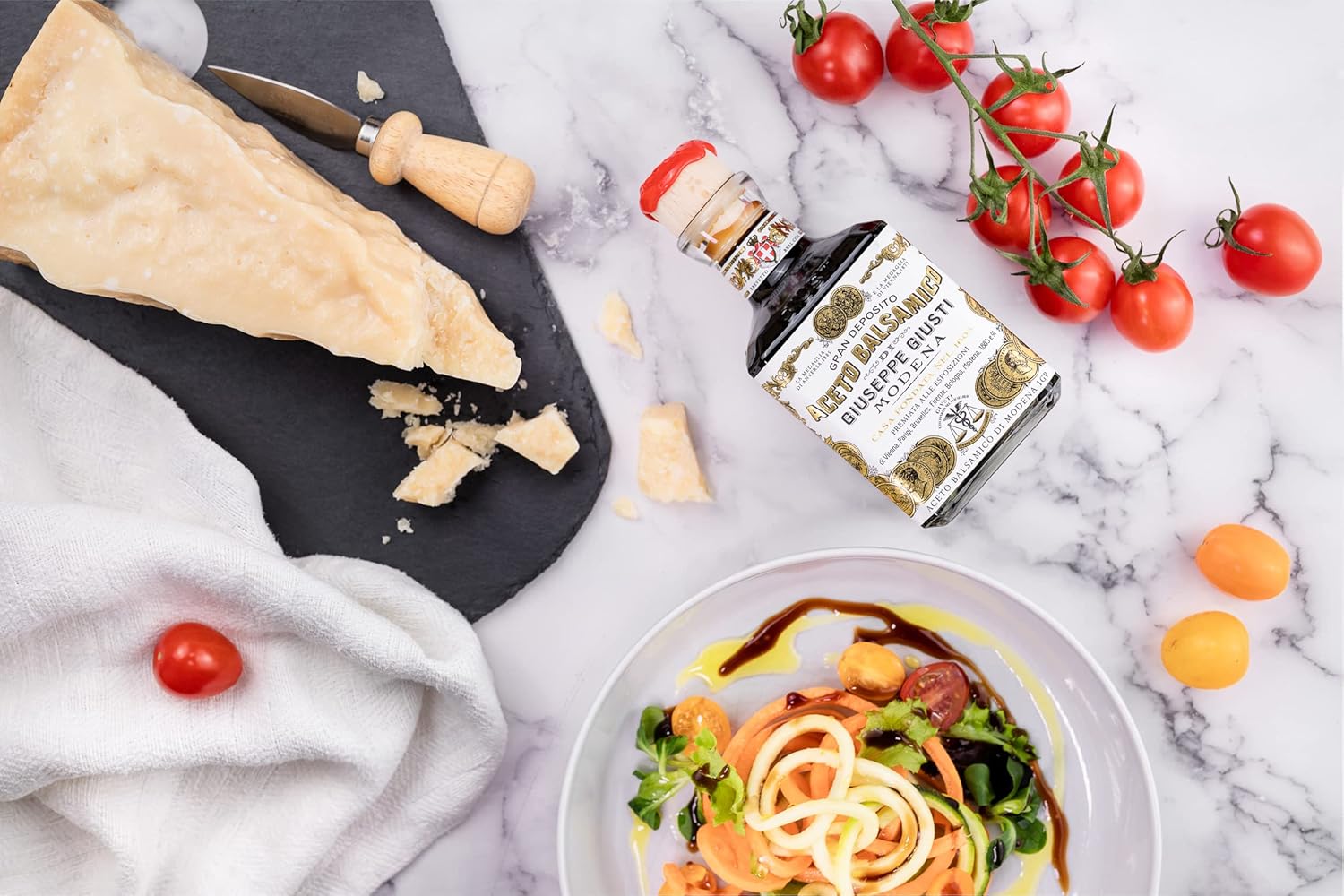 Conjunto de presente Vinagre balsâmico de alta qualidade e tempero branco de Modena, Itália, que conferem aos pratos um autêntico sabor italiano. Ambos os produtos têm uma utilização versátil na cozinha, podem ser utilizados para uma variedade de pratos, desde aperitivos a sobremesas