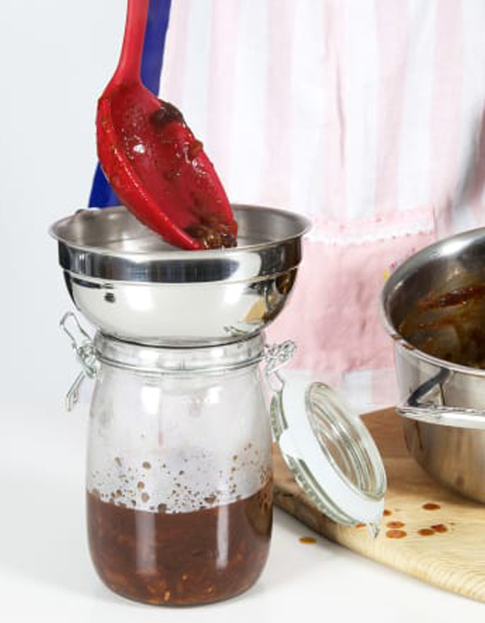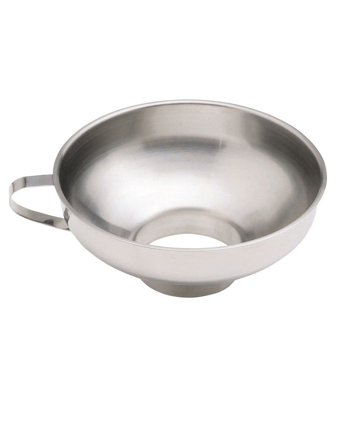 O Funil para Compotas de aço inoxidável de grande capacidade com uma alça robusta garante uma conservação fácil e limpa. Ideal para uso com a maioria dos frascos de conservação.