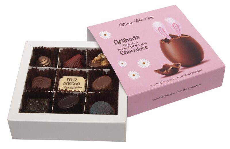 Maria Chocolate Caixa 9 Bombons Afilhada Chocolate Fabrico Artesanal