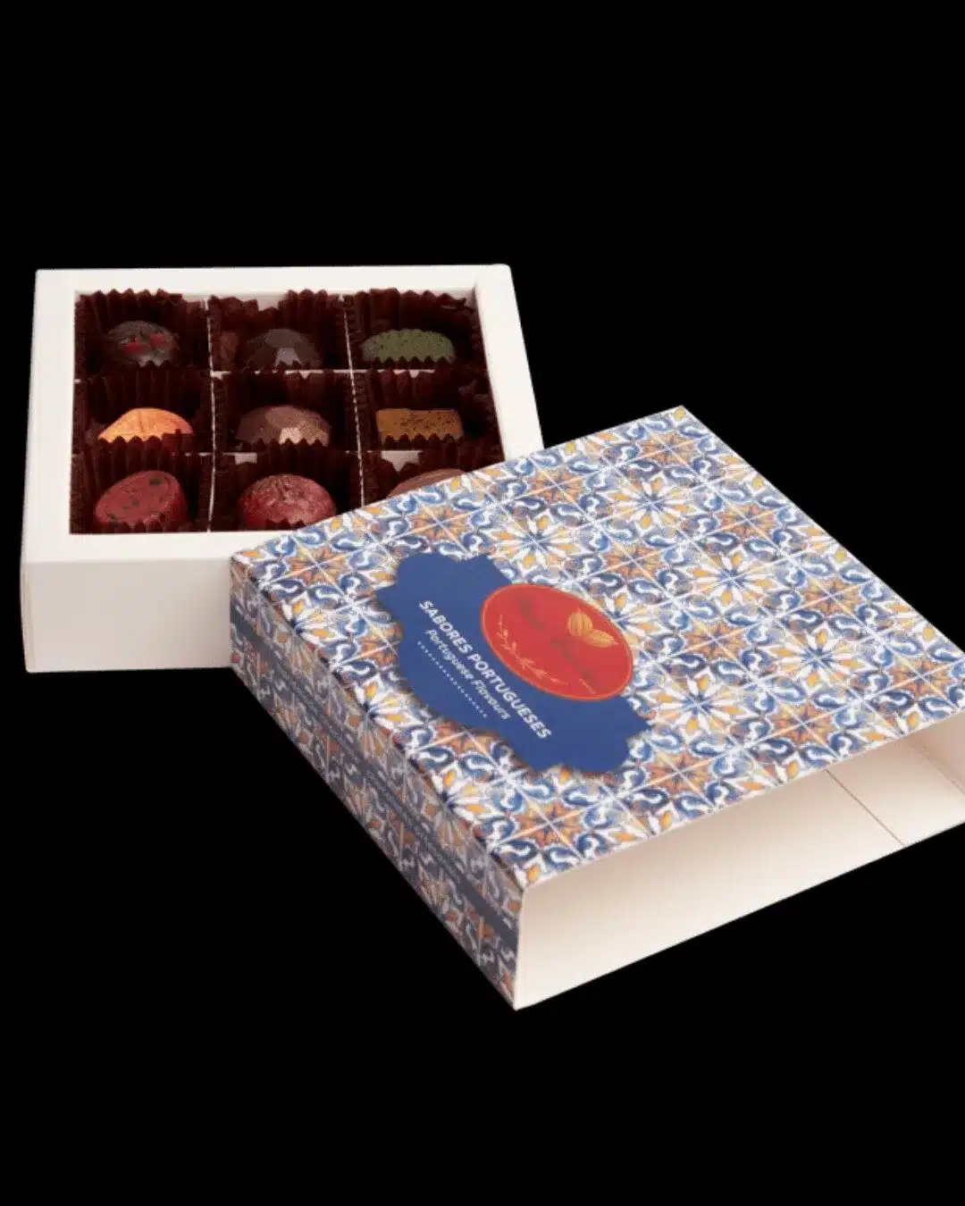 Maria Chocolate Caixa 9 Bombons Sabores Portugueses - "Azulejo” Chocolate Fabrico Artesanal