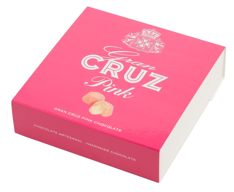 Ingredientes: Cobertura de chocolate branco 60% – açúcar, manteiga de cacau, leite em pó, soro de leite em pó, emulsionante: lecitina de soja, extrato de baunilha; Recheio vinho Gran Cruz Pink 38% – chocolate branco 18% (açúcar, manteiga de cacau, leite em pó, soro de leite em pó, emulsionante: lecitina de soja, extrato de baunilha), vinho Gran Cruz Branco 7,2% (sulfitos), nata ((nata 35% M.G.), emulsionante: E 472b e estabilizador: E 407), açúcar invertido (açúcar, água, reguladores de acidez (E-330, E-550ii)), manteiga sem sal (nata pasteurizada e fermentos lácteos) e sorbitol líquido (E420) (milho, trigo, água); Corante: Propelentes (Butano E943a, Isobutano E943b, Propano E944), álcool etílico, corantes (E171 e E172).