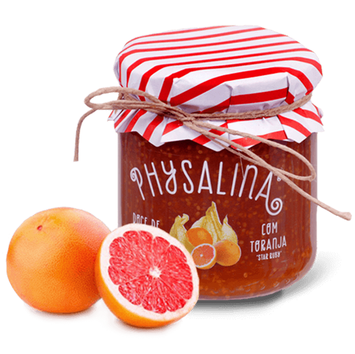 Ingredientes: 60% Bagas de Physalis peruviana, Toranja Star Ruby, açúcar e sal