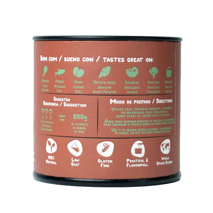 Ingredientes: Sésamo torrado, sumac, sal marinho (10%), manjerona, orégão e tomilho