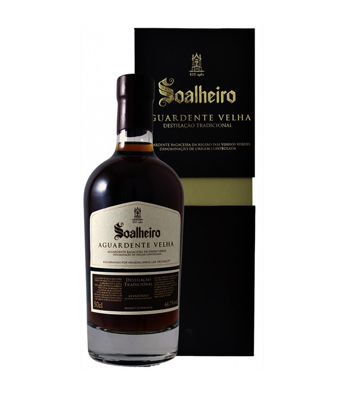 A Aguardente Velha Soalheiro, surgiu em 1999, com o lançamento da 1.a série de 1428 garrafas numeradas. Desde a primeira colheita, que a elaboração desta aguardente está sujeita à destilação dos melhores bagaços de Alvarinho, envelhecendo ao longo dos anos em cascos de carvalho, do qual lhe extrai a cor e a estrutura que completam o aroma intenso da casta.