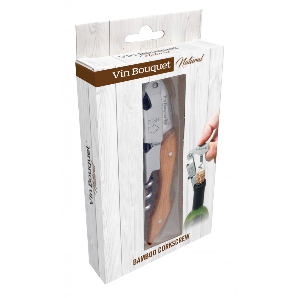 Abrir uma garrafa de vinho nem sempre é fácil. Com o Saca - Rolhas de 2 Tempos de Bamboo da Vin Bouquet consegue extrair as rolhas em duas etapas sem danificá-las. Graças ao seu design compacto e leve, é fácil de usar. Possui uma lâmina para cortar tampinhas rapidamente, além de um abridor de tampas na parte superior. É ideal para uso profissional.