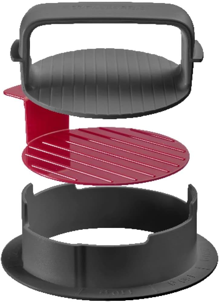 A alça foi projetada para distribuir uniformemente a pressão do hambúrguer de espessura uniforme de forma a facilitar a sua confeção;